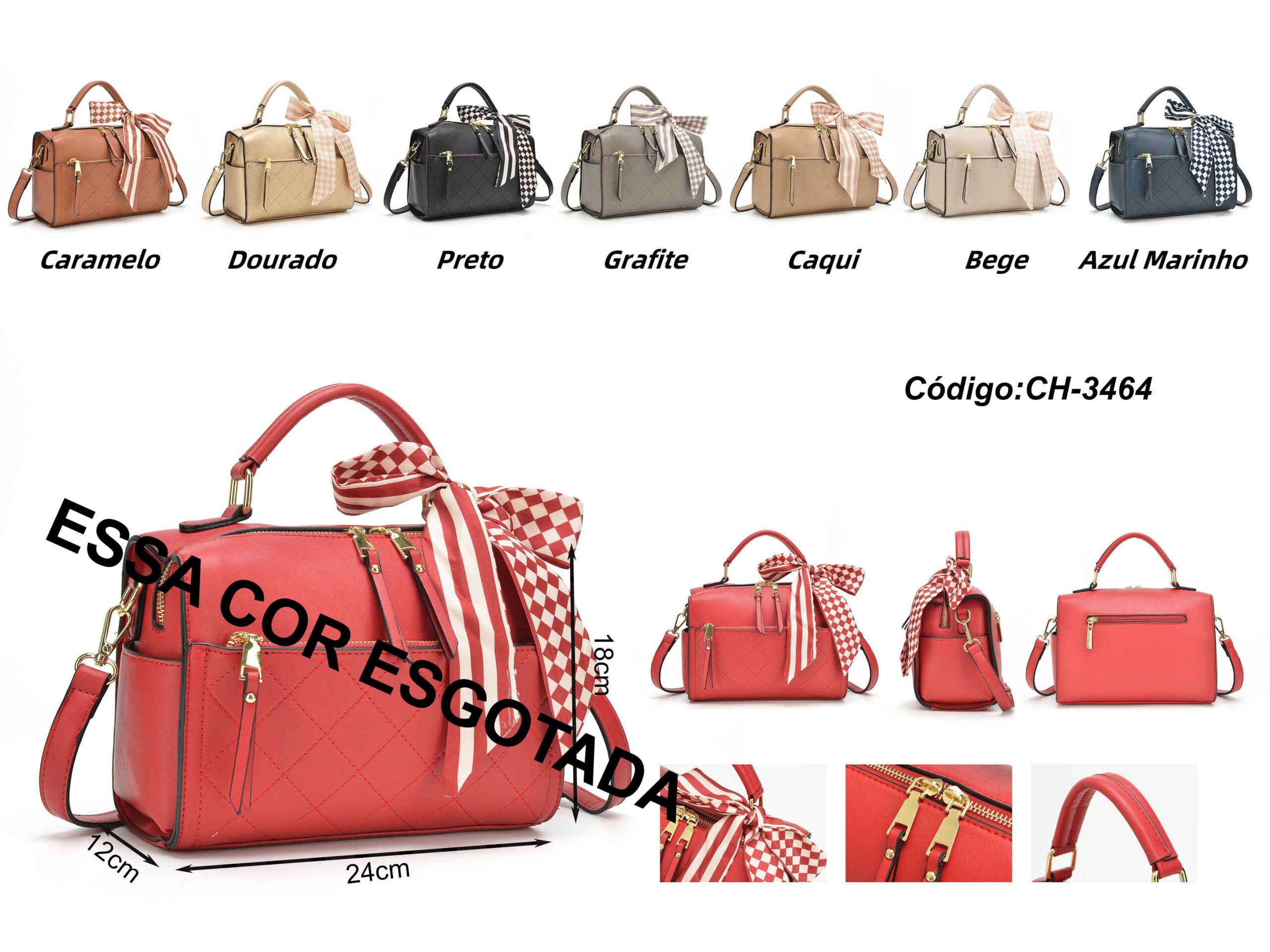 O grande diferencial do modelo CH-3464 é o charmoso lenço estampado amarrado à alça, que adiciona um toque de feminilidade e estilo único à peça. A bolsa conta com múltiplas opções de uso: possui alças curtas e reforçadas para ser levada na mão, e acompanha uma alça longa ajustável e removível para uso transversal ou no ombro. Os zíperes duplos no compartimento principal e os detalhes em metal dourado conferem um acabamento luxuoso.