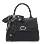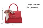 Procurando uma bolsa feminina de mão estruturada elegante? Conheça o modelo BH-1097 da Lumoza. Compacta (23x16x10cm), com lenço e fecho metálico. Compre já!