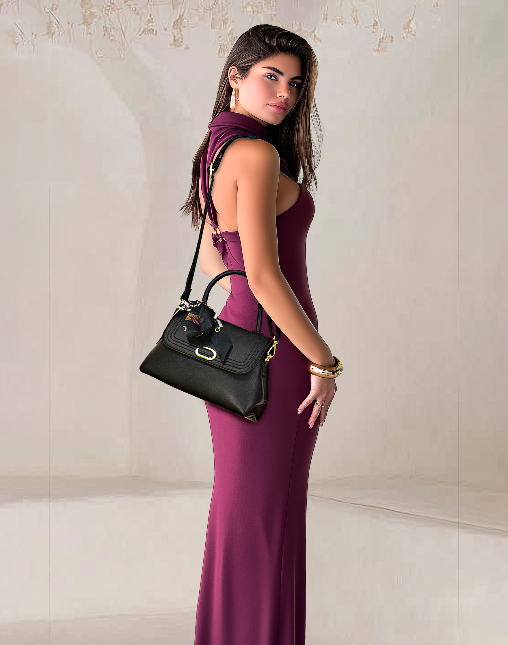 - Detalhes Luxuosos: Acompanha lindo lenço estampado e fecho metálico dourado.