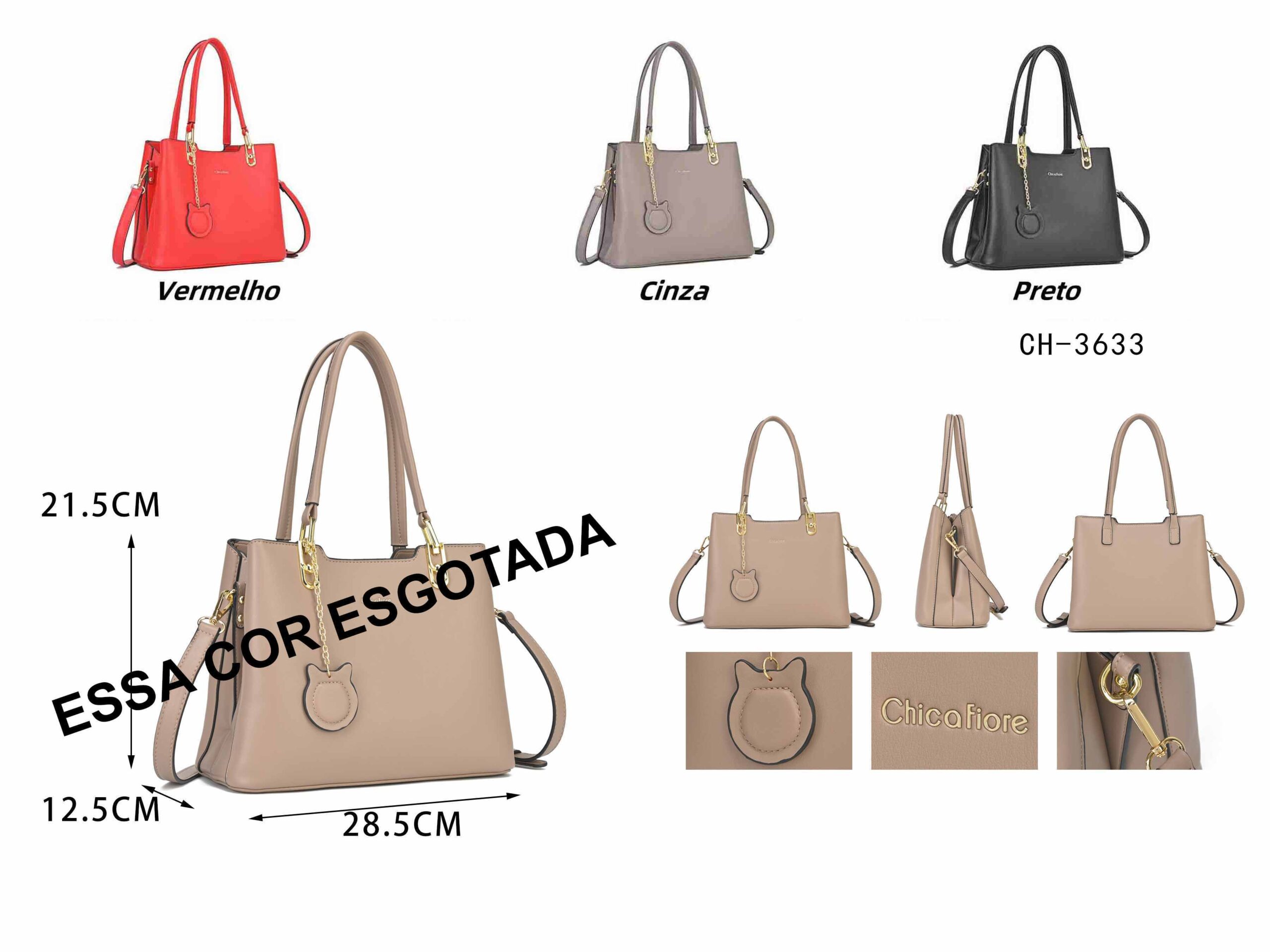 O modelo CH-3633 destaca-se pelos seus detalhes cuidadosamente pensados. A bolsa conta com um charmoso pingente redondo pendurado na alça frontal, adicionando um toque de feminilidade e exclusividade à peça. A inscrição “Chicafiore” delicadamente gravada em dourado complementa o visual luxuoso. A bolsa oferece excelente versatilidade com suas alças duplas de ombro confortáveis e acompanha uma alça longa ajustável e removível para uso transversal.